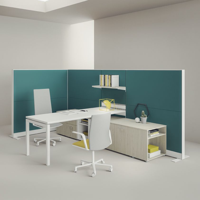 This smart working unit is one of its kind; with its pastel color, it can stand out anywhere. You can completely transform the feel of dull, boring office space just by the addition of it. It provides a working space for two individuals to work right next to each other. It comes with a light brown storage unit which is 183 cm long, you can keep your files and belongings in it, and its top can also be used to put printers and stuff. It also has a floating shelf, which you can use to put some books, or you can use it for some light office décor. It provides coverage from two sides, which makes it perfect for a safe office interaction in times of pandemic. It is made of particle wood with stainless steel legs, which makes it robust enough to carry a weight of 300kg. The desktop has ample surface area to keep two laptops on it with still some space left to keep your files, without the fear of it collapsing down.