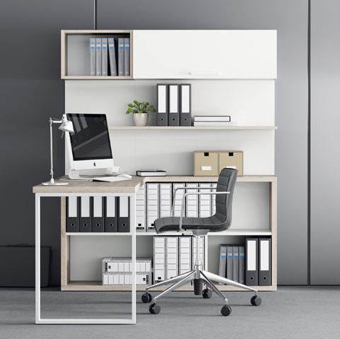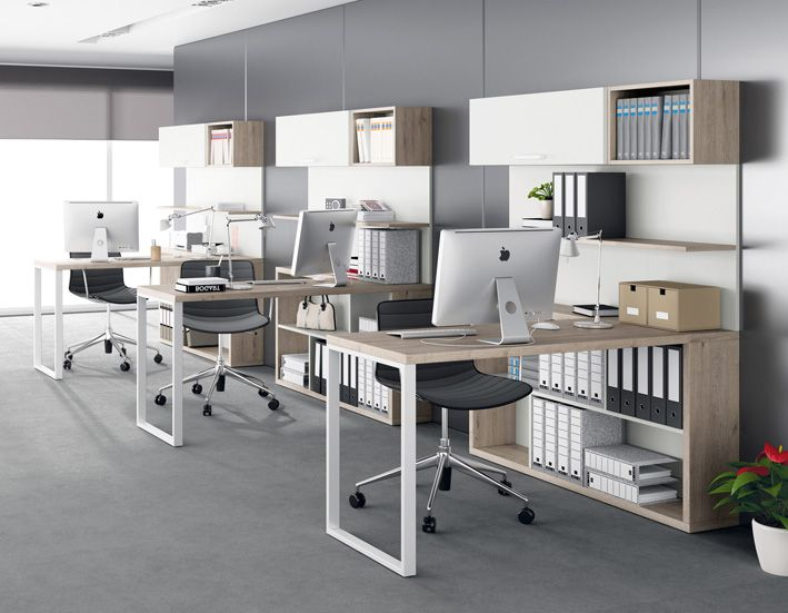 The time of pandemics has made it challenging to work in an environment without risking your health. This L-shaped work unit provides an ultimate solution for crowded workspaces with no safe distance and privacy. Each desk is a complete work unit for an individual. The desk part is attached with a shelf unit to keep files in it; you can also put stuff on its top. It also has a floating shelf and an above head cabinet. The desk has an ash veneered surface with stainless steel legs; it will not only beautify your workspace but will also make it safer for you to work